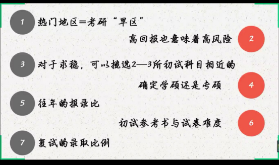 周天元主要讲解了在择校上应该避开的雷区。他认为,自身实力包括本科院校、大学成绩等各个方面。一般来说,除非选择固定的地域或者选择王牌的专业,选择的院校都是高于本科学校的。如果大学期间学习成绩比较好,科研项目经历比较多,发表过论文,可以冒险选择一个特别中意的学校,但是切记,高回报也意味着高风险。对于比较保守的同学来说可以挑选2—3所初试科目相近的院校,避免一志愿的学校在9月更换参考书目,给自己留有回旋的余地。关于避开“雷区”,他向同学们提出建议,要量力而行,选择学校要慎重;避开那些“名声”不好的学校,不要一意孤行当炮灰;既然决定了考研,就要坚持到底,最起码要坚持把考试完成,不要考完英语,最后的专业课直接不考了,要对得起自己一年的付出,坚持就是胜利!