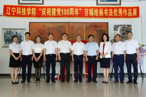 6月25日,辽宁科技学院“庆祝建党100周年”百幅绘画书法优秀作品展在博雅楼一楼开展,本次展览由学校党委宣传部、工会主办,人文艺术学院承办,是我校庆祝中国共产党成立100周年系列活动之一。党委书记韩劲松、校长李卫民、副校长吴国玺、副校长赵毅、纪委书记崔来成及各部门领导、党员教师、学生代表等参加。