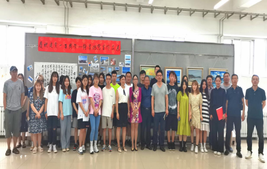为庆祝中国共产党成立100周年,深入学习贯彻习近平新时代中国特色社会主义思想,将党史教育融入绘画专业教育教学,人文艺术学院18级绘画专业于7月9日上午在艺术楼四楼展厅举办以“情系祖国山水礼赞百年华诞”----庆祝建党100周年为主题写生作品展。活动由绘画专业教师王雪竹主持,人文艺术学院领导班子,专业老师、辅导员及绘画专业学生参加了本次活动。
