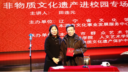 院长为评书表演艺术家田连元老师颁发客座教授聘书