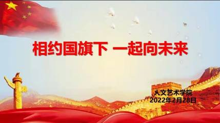 窗体顶端 为深入学习贯彻党的十九大和十九届历次全会精神,贯彻落实习近平总书记关于教育的重要论述和第十三次党代会精神,巩固党史学习教育成果,传承优良家风家训,弘扬雷锋精神,增强文化自信,强化爱国情怀,在贯彻落实校园防疫要求的前提下,人文艺术学院于2月28日举行以“相约国旗下,一起向未来”为主题的云升旗仪式。升旗仪式由段清清同学进行主持,人艺学院全体学生出席参与。
