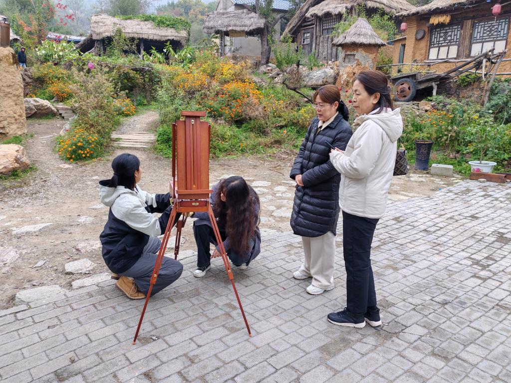 10月16日,人文艺术学院院长李春燕、教学副院长汪子入以及校督导老师陆慧、王绍静一行前往辽阳核伙沟画家村看望正在进行实践教学的环境设计与绘画两个专业的师生,并对实践教学进行了现场指导。期间,学院与核伙沟画家村梨园驿站正式签订协议,将其确立为“辽宁科技学院实践教学基地”并举行挂牌仪式。