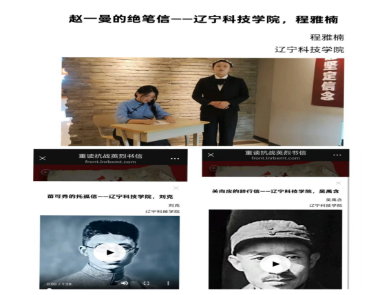 为纪念中国人民抗日战争暨世界反法西斯战争胜利80周年,深入弘扬伟大抗战精神,人文艺术学院淬火先锋工作室青言青语宣讲团积极响应省教育厅联合辽宁日报社发起的“重读抗战英烈书信”活动,共投稿4篇音频作品与3篇视频作品,且全部入选并获展播。他们以青年视角为切入点,搭建起与革命英烈跨越时空的对话桥梁。