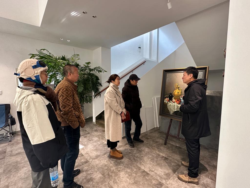 在李传久美术馆,团队参观了本溪市美术家协会副主席、一级美术师、著名油画家李传久的个人画展。交流中,李传久结合作品详细解读传统油画技法的传承与发展、坚守与创新路径,分享艺术品市场化实践经验,并针对绘画专业古典技法课程设置提出宝贵建议,为专业教学优化提供参考。