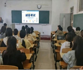 各班级精心策划、巧妙引导,围绕“诚信考试”这一核心主题,展开了一场深度思想碰撞。各班级通过播放诚信考试宣传片,直观呈现考试违纪作弊的严重后果,引发同学们的强烈共鸣与深刻反思。针对考试违纪处分条例的细致解读,更让同学们明晰纪律红线并深刻认识到,诚信不仅是立身之本、道德之基,而且是学业征途中不可或缺的“必修课”,是个人成长路上不可逾越的底线。此外,学院组织学生签署《诚信考试承诺书》,以书面形式强化责任意识,筑牢思想防线。